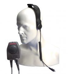 A high quality rugged bone conductive compact helmet-com unit for professionals working in hazardous conditions. It has a dirt protected microphone and a single speaker and easily mounts into most helmet types and provides clear and hands-free communication. The headset attaches via a quality in-line connector to a large rugged waterproof press to talk switch that can clip on to a belt or other suitable position using the rugged revolving clip. The press to talk switch is easy to use, has a positive feel and can be used by a gloved hand or under clothing. As with all bone conductive accessories, we do not recommend using voice operated transmit (VOX).