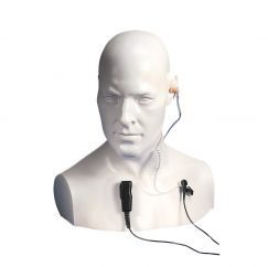 A clear acoustic tube earpiece which fits in your ear using the small or large soft pink ear plugs supplied. This is connected to a combined tie clip microphone and press to talk button (PTT). It allows the radio user to carry the radio on their belt and have the facility to both make and receive calls without removing their radio. This keeps the radio safe and ensures that calls are not missed, especially in noisy environments. This accessory is particularly suited to covert, security applications. This accessory is designed for light to medium duty applications, so to ensure maximum life span it should be personally allocated to users.