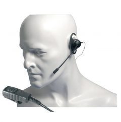 A ‘D’ shaped, soft rubber-feel earpiece which fits over your ear. The earpiece is combined with a lightweight short profile boom microphone. There is an in-line press to talk button (PTT) with clip. It allows the radio user to carry the radio on their belt and have the facility to both make and receive calls without removing their radio. This keeps the radio safe and ensures that calls are not missed, especially in noisy environments. This accessory is designed for light to medium duty applications, so to ensure maximum life span it should be personally allocated to users.
