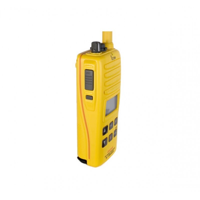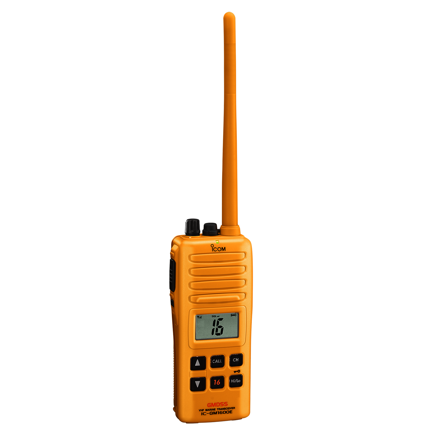 The IC-GM1600E’s shock-resistant housing is constructed of a brightly coloured dye-injected polymer assuring this essential piece of emergency equipment will always be easy to find, in a survival bag, in a life raft, and in a pinch.
