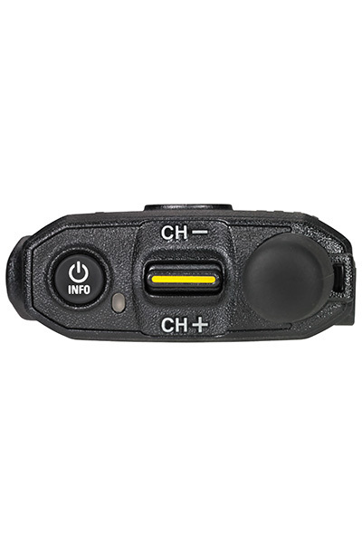 - Large, textured push-to-talk button for ease of use
