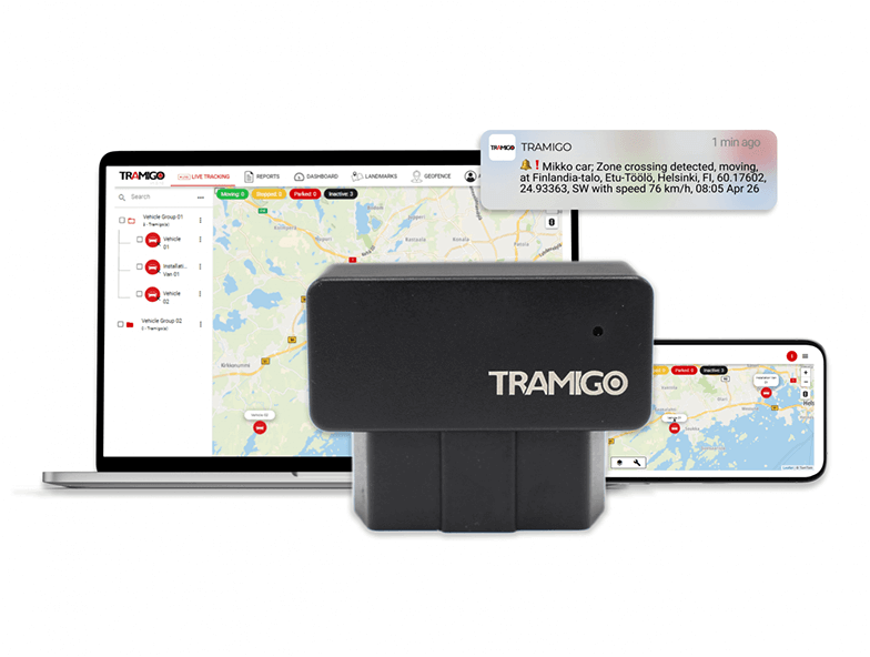 Tramigo OBD Standard is an all‐in‐one Plug and Play tracking device with vehicle tracking features.